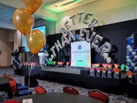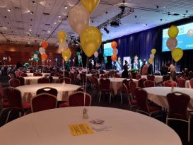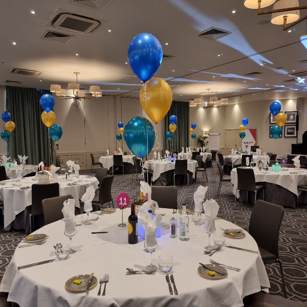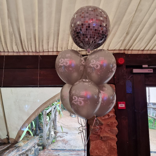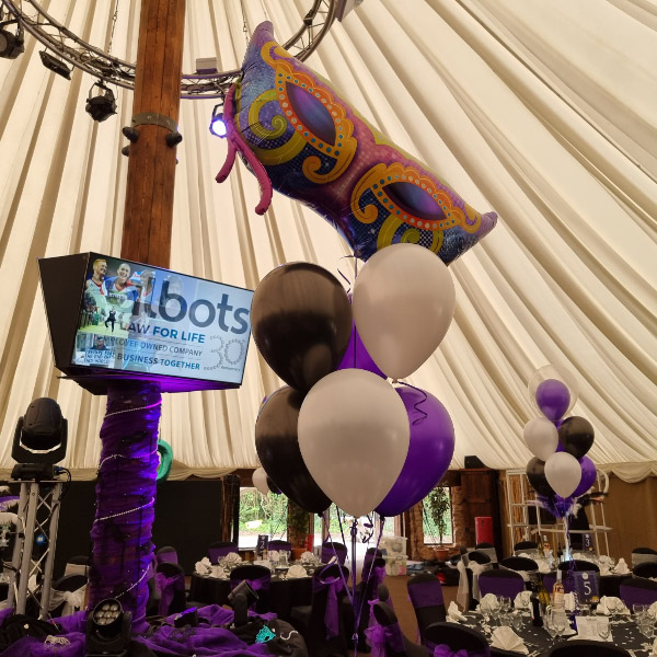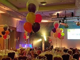 We specialise in corporate events but can also supply for parties, proms and occasionally weddings. Our latest work included mirrorball balloon displays, columns and balloon bouquets with logos printed on top of the sponsors for the Worcestershire Ambassadors Ball at West Midlands Safari Park.
